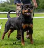 typvolle Gesamterscheinung im Stehen und in der Bewegung, Körperlänge genau zur Widerristhöhe passend, vorzügliche Knochenqualität, kräftiger Oberkopf, angemessener Stirnabsatz, normale Fangbreite, Ohren etwas klein, Augen und Maul dunkel, kräftiger, richtig aufgesetzter Hals, rassetypische, leicht gewölbte Nackenlinie, harmonisches Verhältnis von Ober-zur Unterlinie, Rute richtig angesetzt, geformt und getragen, breiter Körper, langes Brustbein, funktionale Winkelungen vorne und hinten, dicht anliegendes Stockhaar, klar gezeichneter Brand, erzielt viel Raumgewinn im Trab, aufgewecktes, freundliches Verhalten – Revieren/Stellen/Verbellen Motivation=v, Revieren/Stellen/Verbellen Ausführung=sg, Griffverhalten=v, Ausdauer=v, Führigkeit=sg, Schussprobe=gleichgültig, Fluchtversuch/Angriff Ausführung=sg, Angriff aus der Bewegung Motivation=v, Angriff aus der Bewegung Ausführung=sg, Einsatzfreude=v, Beruhigungsvermögen=sg, Belastbarkeit=v, Formwert=V